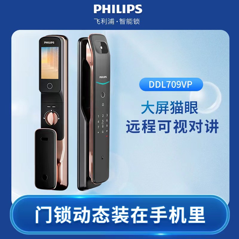 Philips kunci cerdas 709vp, kunci sidik jari kata sandi, kunci elektronik anti Maling, kunci pintu panggilan video jarak jauh interkom