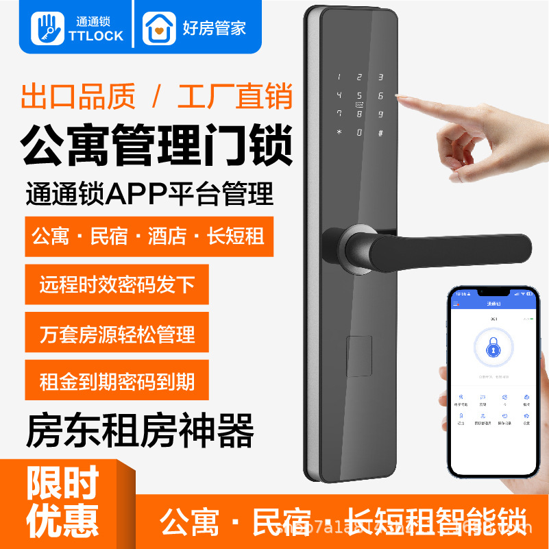 Tongtong kunci apartemen kata sandi sidik jari, pembaruan kartu kunci pintar sidik jari Bluetooth B & B grafiti hotel WiFi multi-bahasa