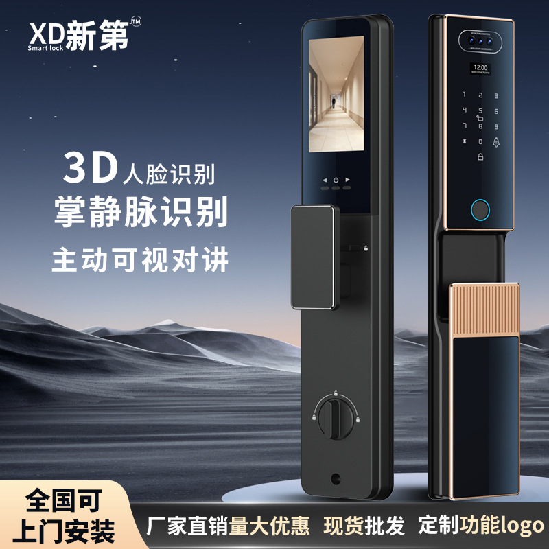 Kunci pintar pengenalan wajah 3D, kunci kata sandi sidik jari rumah tangga pemantauan mata kucing visual otomatis pintu anti-maling