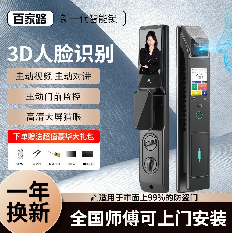 Baijialu Kunci Pintu Cerdas Pengenalan 3D Kunci Pintu Cerdas Generasi Baru Kunci Pintu Anti Pencurian Kata Sandi Luar Ruangan Kunci Pintu Inkom Video