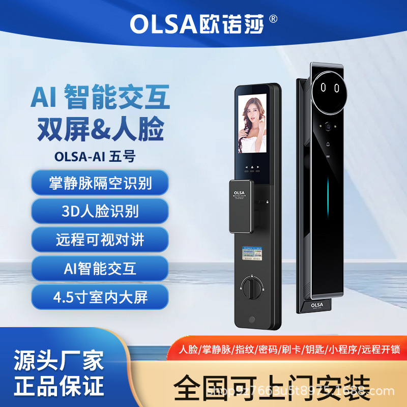 AI wajah manusia palm vena kunci pintu otomatis kontrol jarak jauh HD ganda layar besar anti-pencurian kunci pintu pemasangan gratis