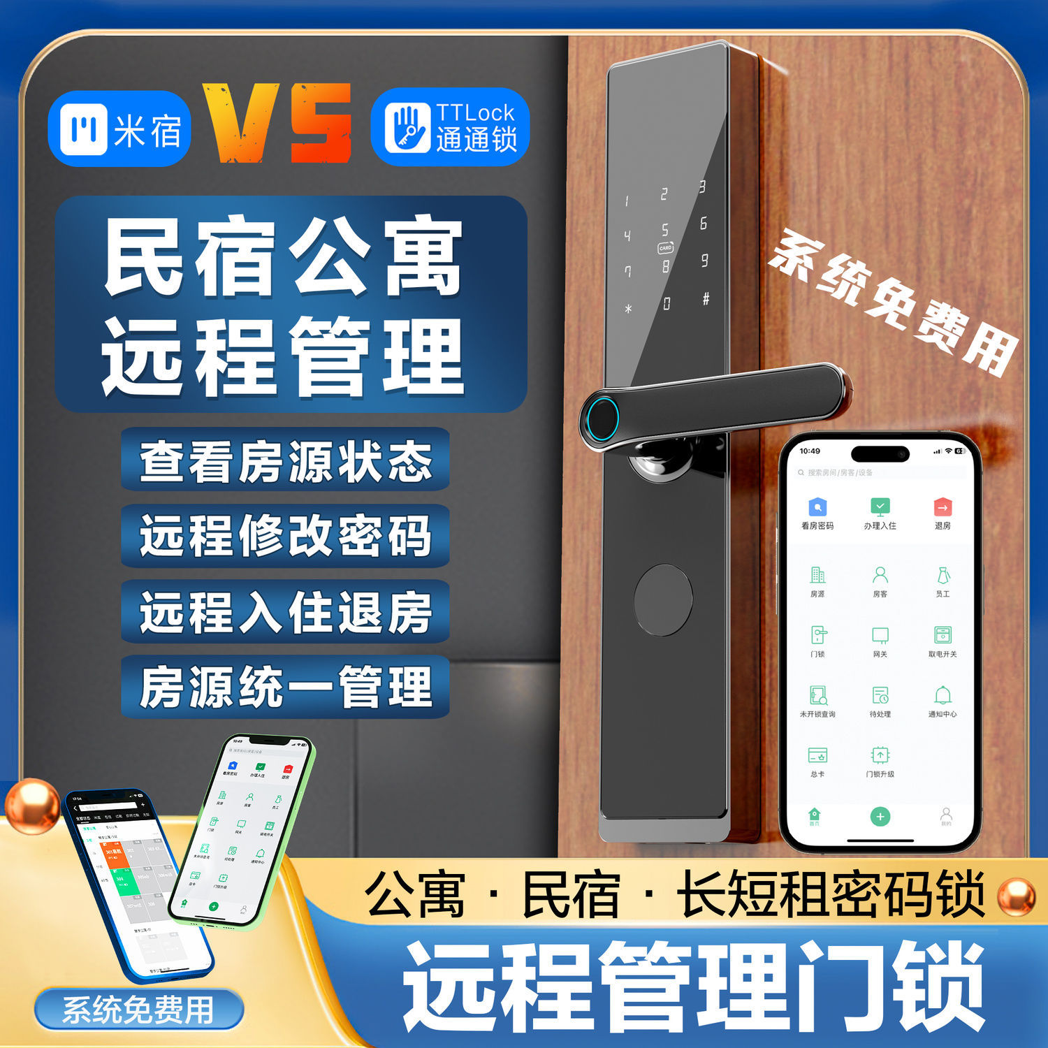 Kunci pintar penyewaan hotel B & B kunci kata sandi pintu anti-maling kunci kartu kredit aplikasi Bluetooth manajemen jarak jauh kunci pintar