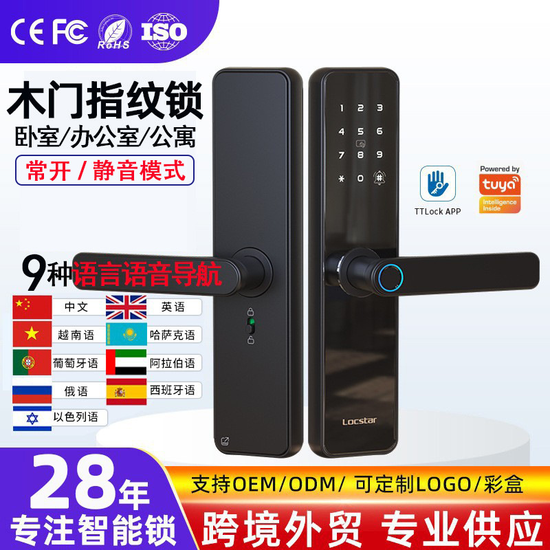 Kunci pintu kayu dalam ruangan dengan sidik jari, manajemen penyewaan, ruang catur dan kartu, kunci pintar elektronik Tongtong, kunci pintu masuk TTLock dengan sandi.