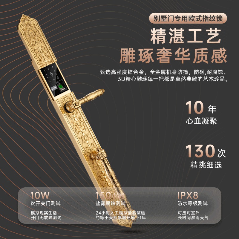 Kunci pintu Vila kunci sidik jari gaya Eropa, kunci pintu sidik jari tahan air luar ruangan pintu Vila kunci sidik jari