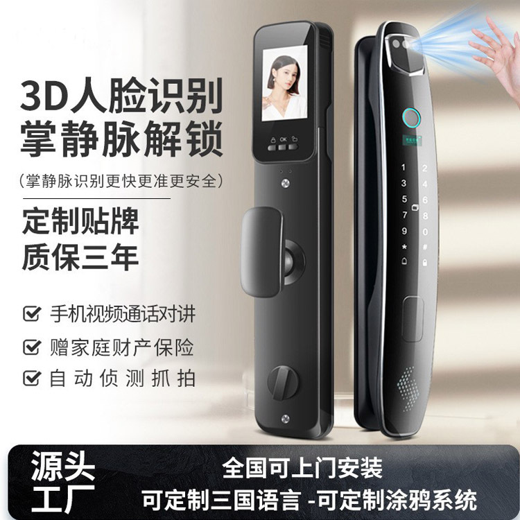 3D Pengenal Wajah Monitor Kunci Sidik Jari Otomatis Kunci Sandi Kunci Pintar Elektronik Rumah Tangga Genggam Telapak Telapak Kaki