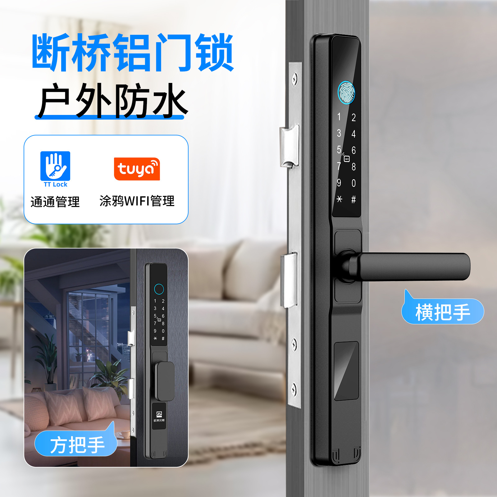 Graffiti WIFI tahan air jembatan rusak pintu aluminium kunci sidik jari terjemahan halaman geser cerdas luar ruangan bingkai sempit pintu sidik jari
