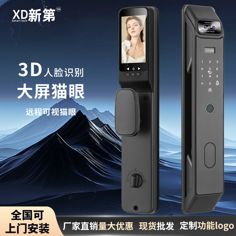 Pasokan langsung pabrik kunci sidik jari pengenalan wajah otomatis dalam ruangan mata kucing anti-maling kunci pintu kunci pintar kata sandi elektronik