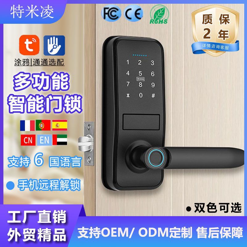 Tongtong kunci pintu kayu sidik jari, kunci rumah tangga pintar produsen TTLock kartu kata sandi Bluetooth kunci elektronik