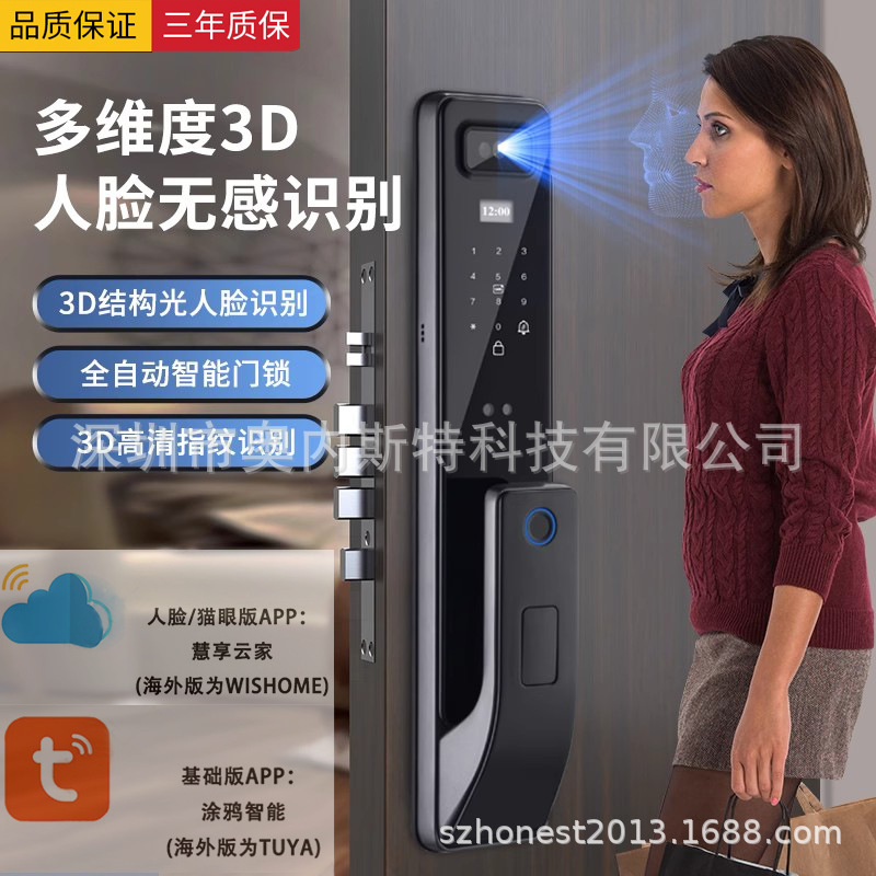 TUYA3D pengenalan wajah sidik jari sidik jari kunci pintu pintar pintu rumah anti-pencurian pintu masuk jarak jauh kunci pintar mata kucing
