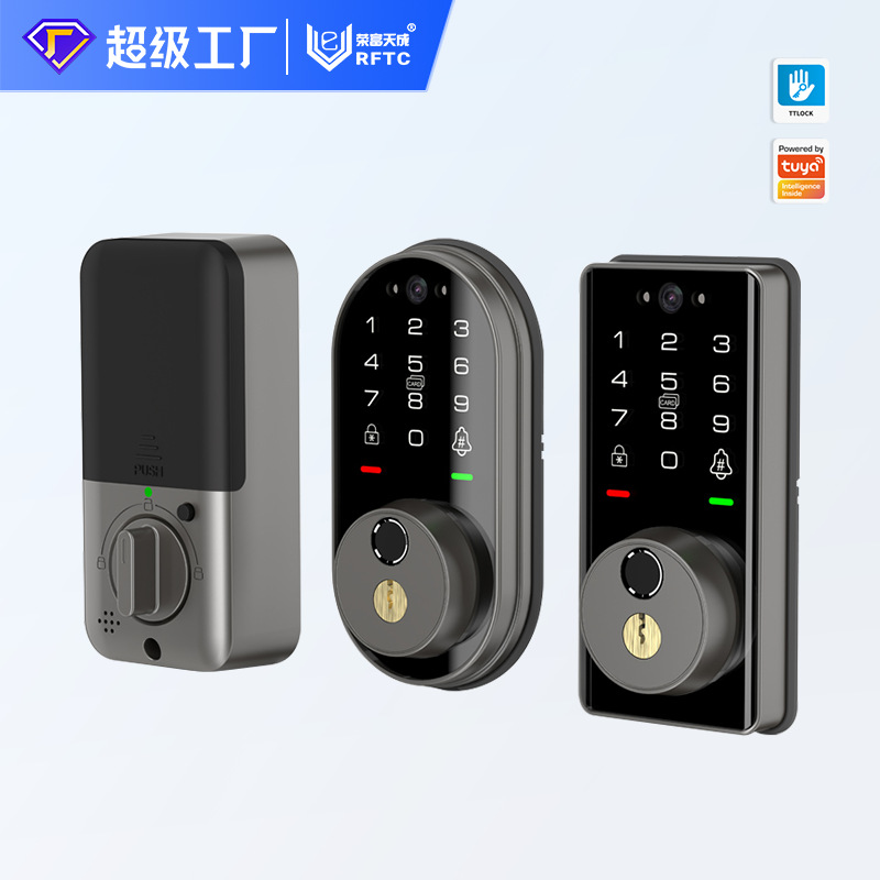 Kunci sidik jari otomatis, kunci elektronik mata kucing visual kunci pintar pengenalan wajah 3D rumah tangga