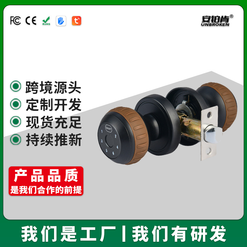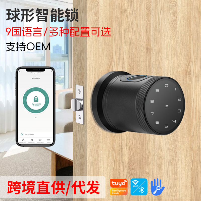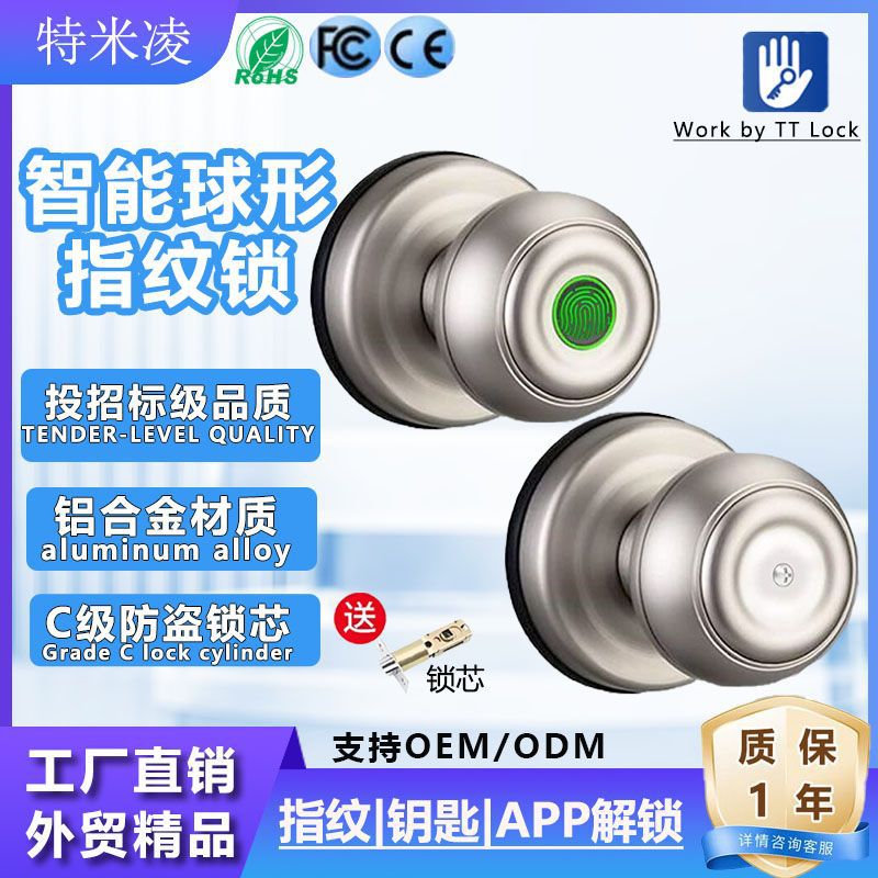 室内房间球形指纹锁智能门锁免改孔式木门办公室公寓密码锁电子锁
