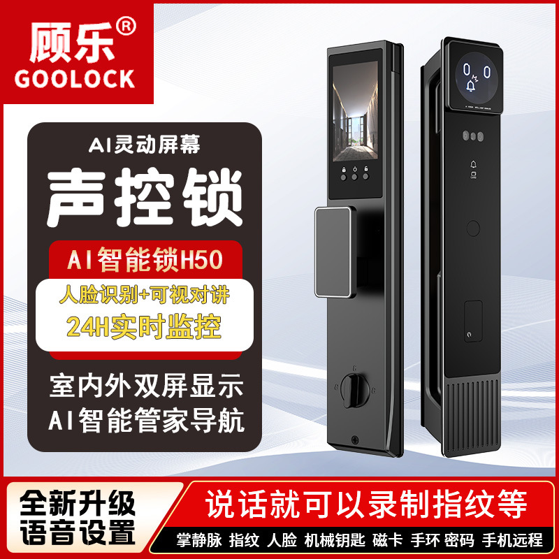 AI kontrol suara pengenalan wajah sidik jari kunci pintu cerdas anti-pencurian kunci pintu rumah besar kunci interkom video