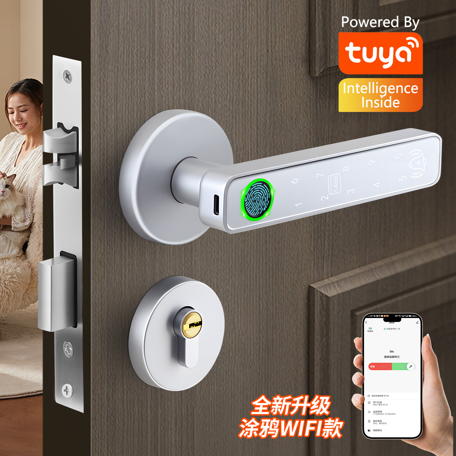 Kunci sidik jari grafiti satu pegangan untuk membuka kunci apartemen Sewa Hotel Tongtong kunci kode manajemen TTLOCK kunci grosir