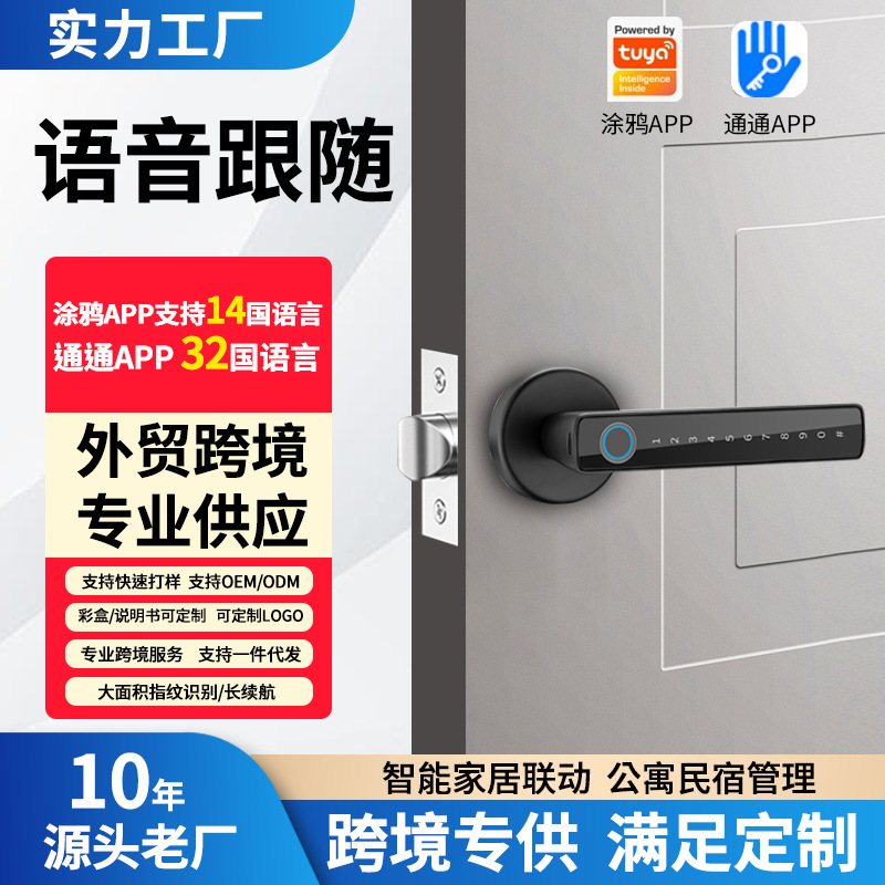 Cross-border delapan bahasa asing grafiti, WIFI pintu dalam ruangan kunci sidik jari dalam stok spesifikasi tubuh lengkap perdagangan luar negeri eksklusif