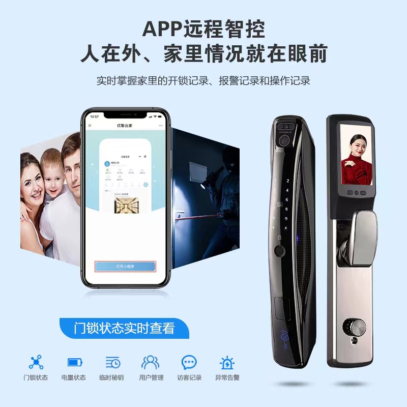 Kunci video pengawasan sidik jari, kunci cerdas mata kucing kunci visual sidik jari kata sandi rumah 3D pengenalan wajah mata kucing