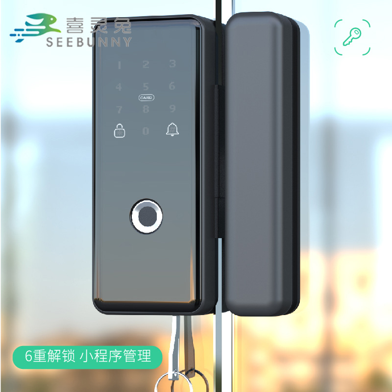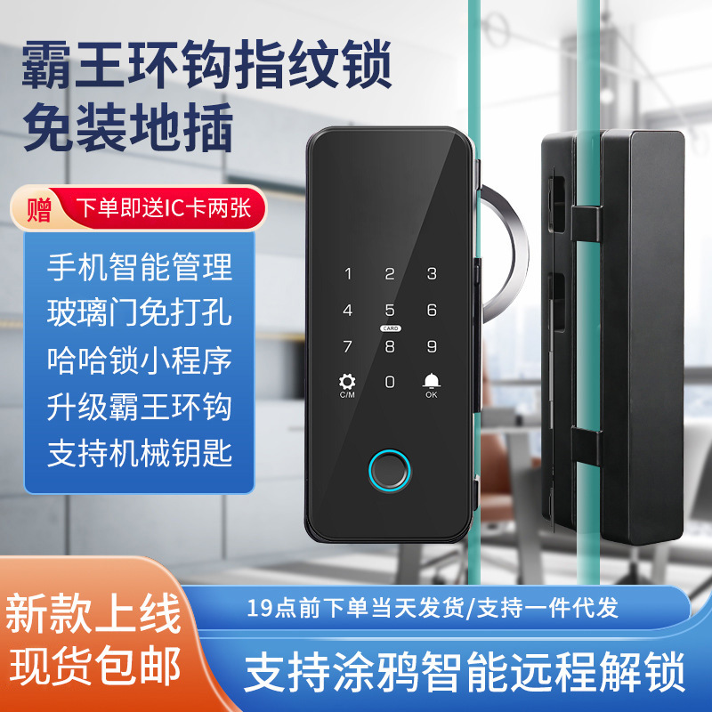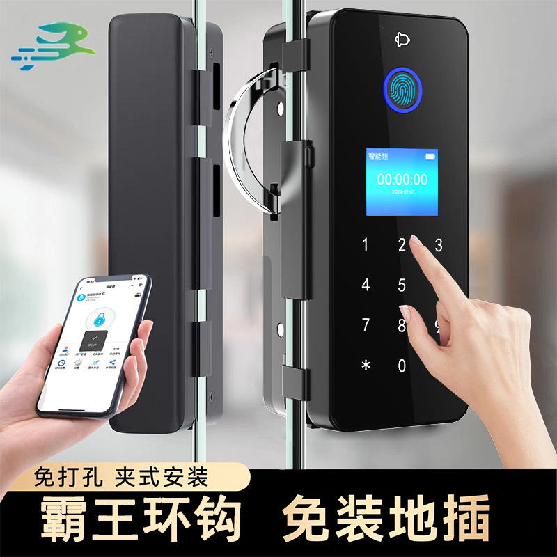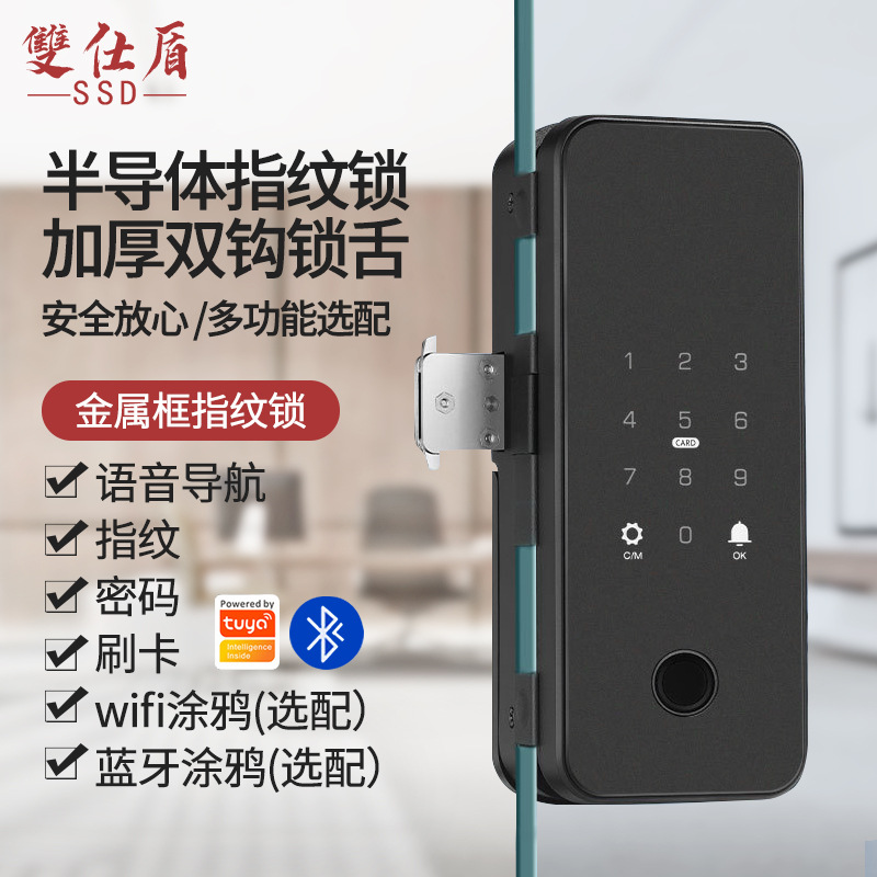Kunci pintu kaca tanpa bingkai untuk kantor dengan kata kunci Shuangshidun, kunci sidik jari semikonduktor, kunci kartu gesek, kunci digital WiFi.