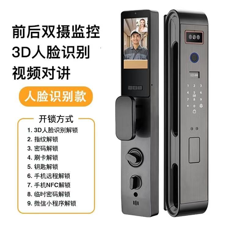Perdagangan Luar Negeri 3D Pengenalan Wajah Palm Vena Otomatis Kunci Cerdas Layar Besar Mata Kucing Kunci Fingerprint Elektronik Kunci Sandi