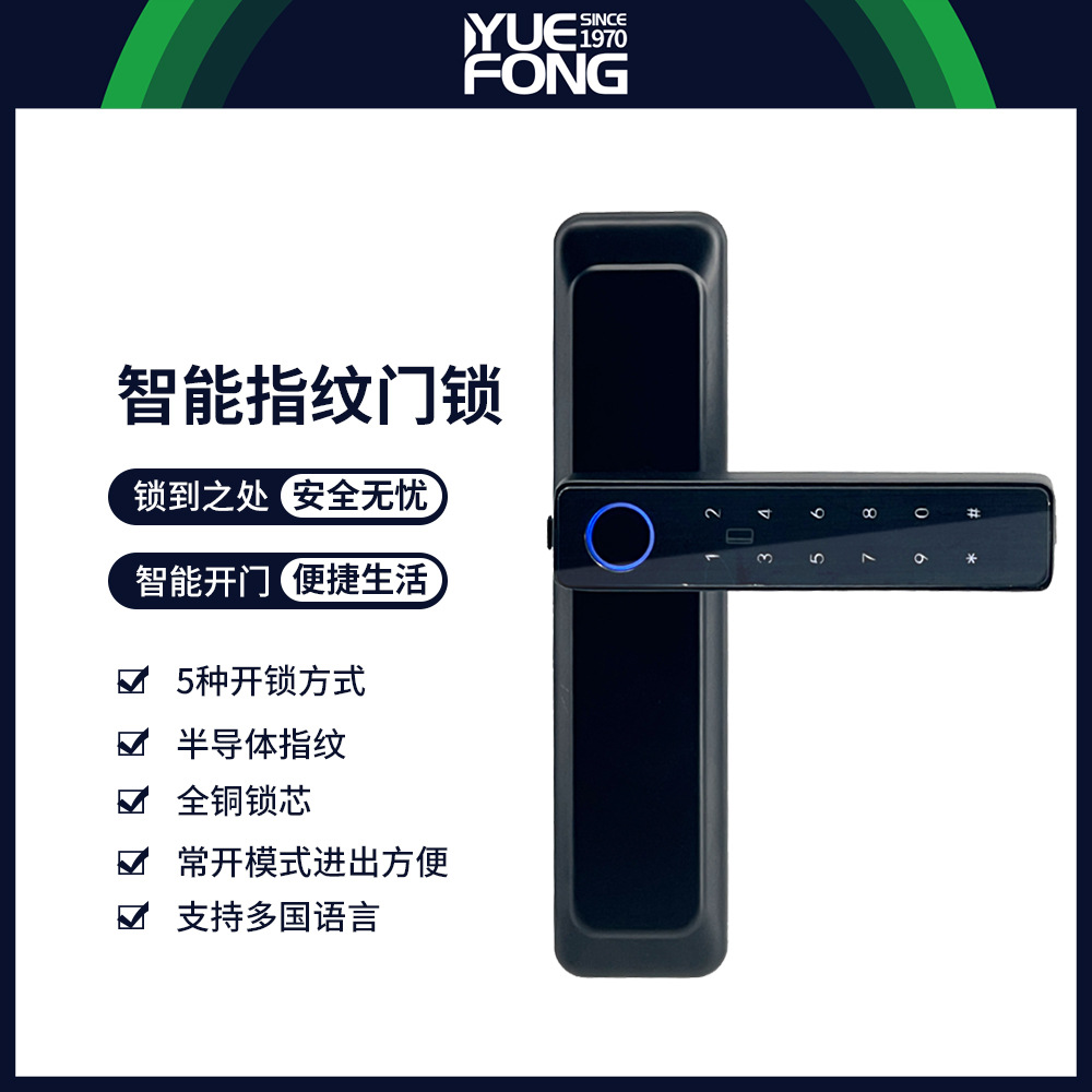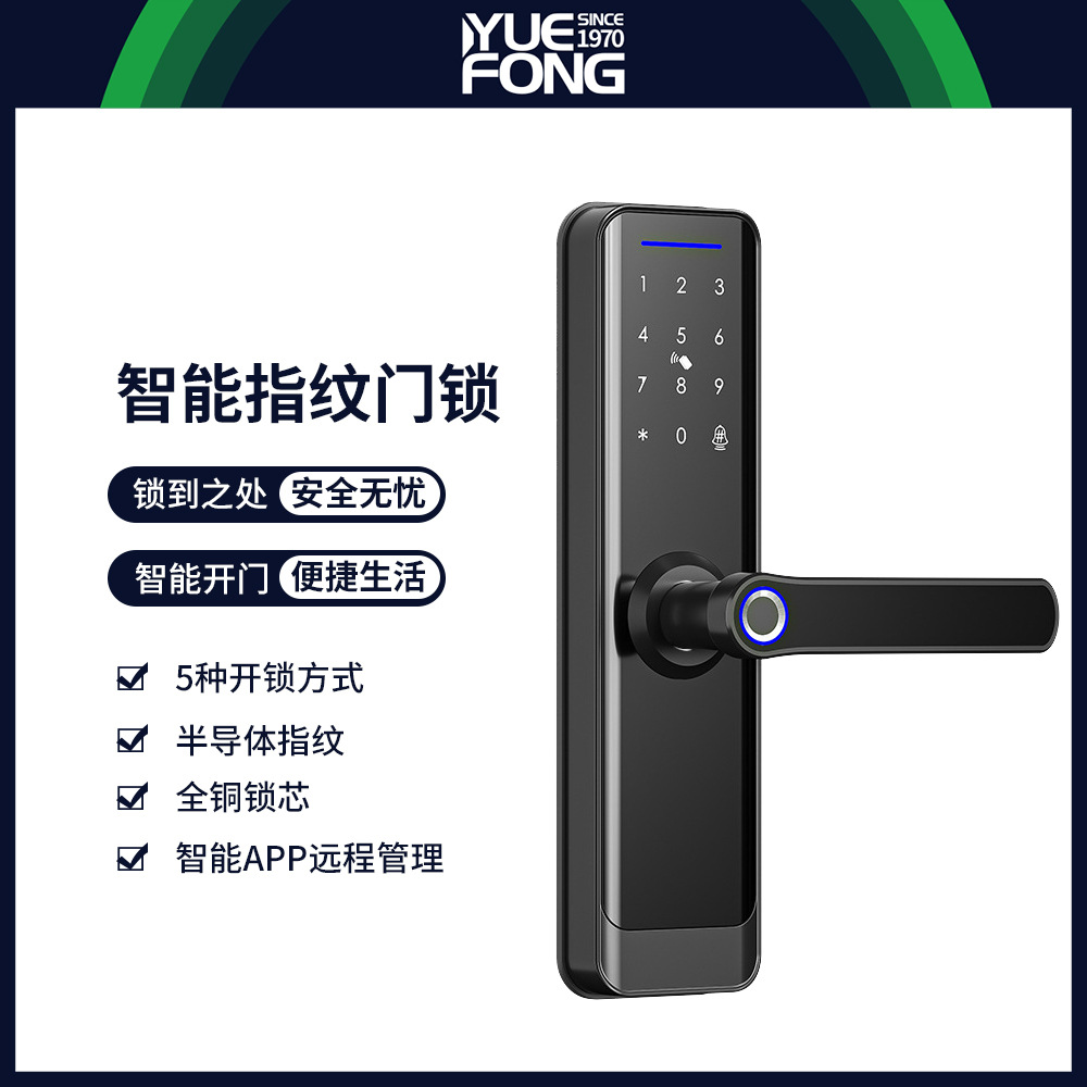 Yuefeng Maishi kunci pintu cerdas, lintas batas perdagangan luar negeri satu penahan semi-otomatis kunci pintu kamar tidur kunci kata sandi sidik jari DENGAN APLIKASI