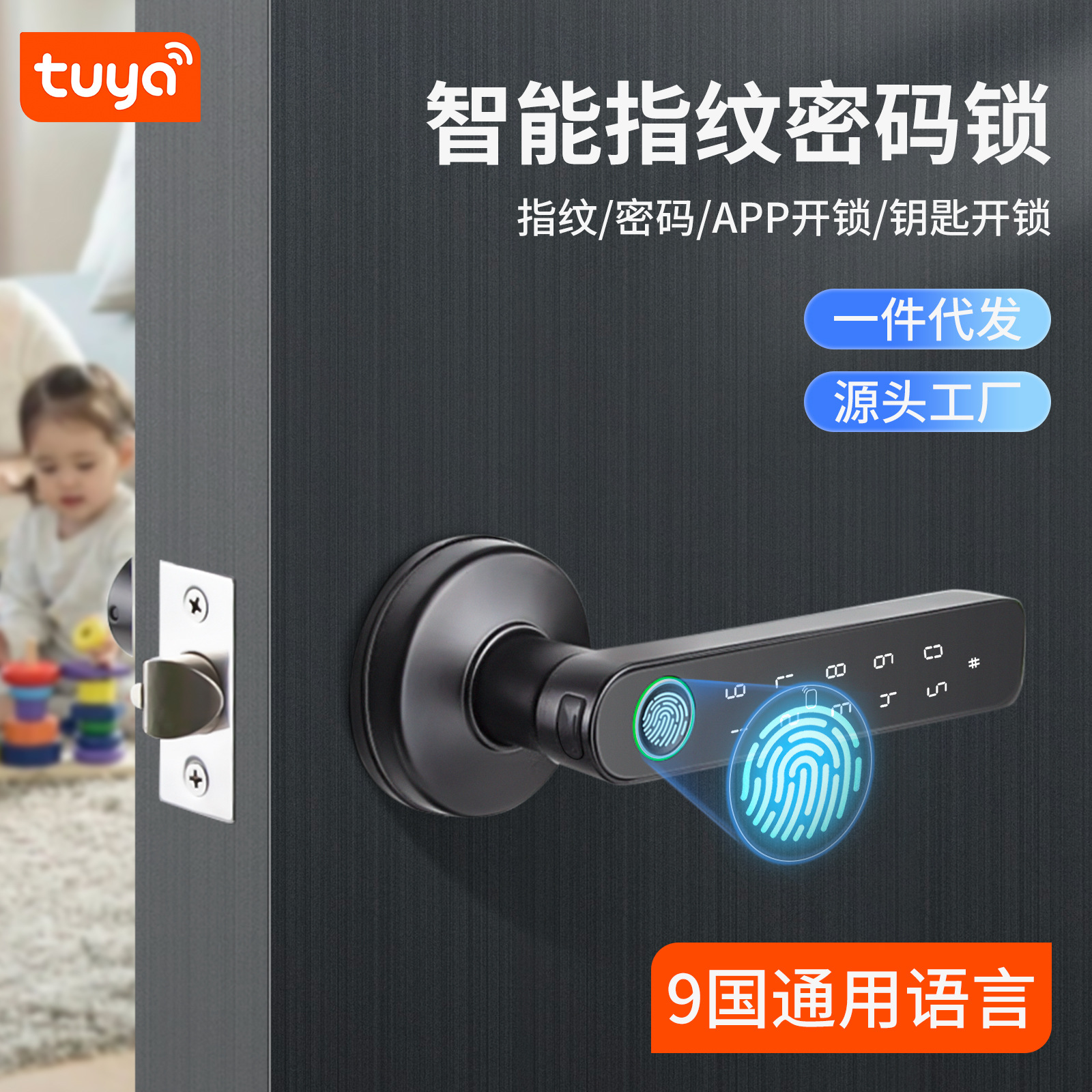 TUYA kunci pintar sidik jari, proyek spesial kunci remote control grafiti apartemen elektronik Kata sandi pintu anti-maling rumah tangga