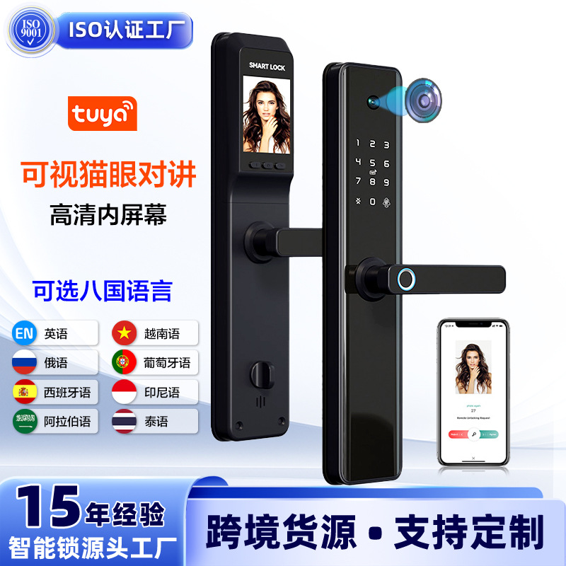 TUYA Doodle Smart Pintu Kunci Pabrik Grosir Fingerprint Kunci 3D Pengenalan Wajah Kunci Elektronik Lintas Batas Perdagangan Luar Negeri Kunci Sandi