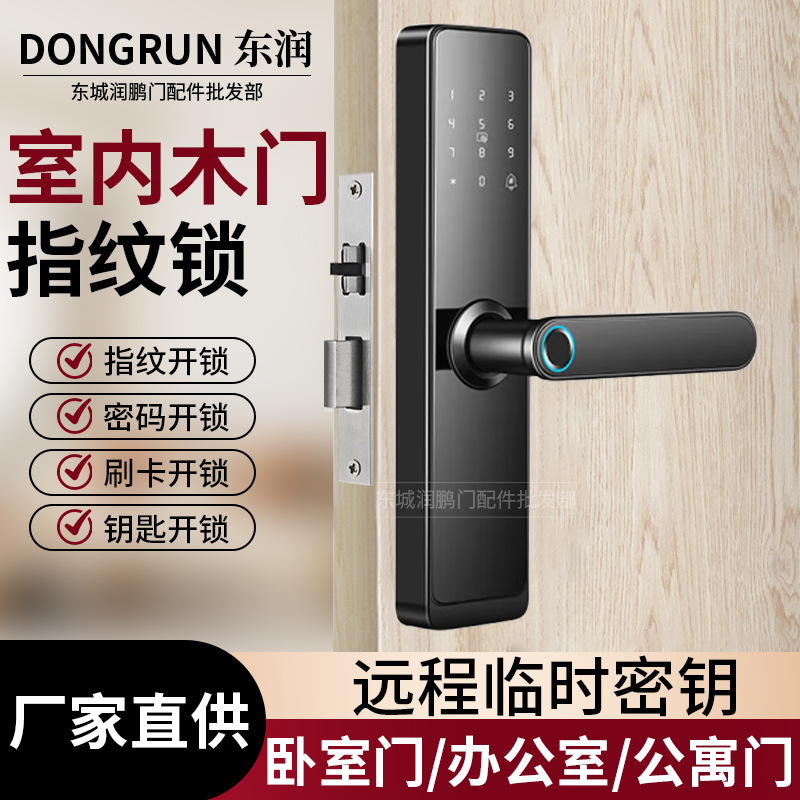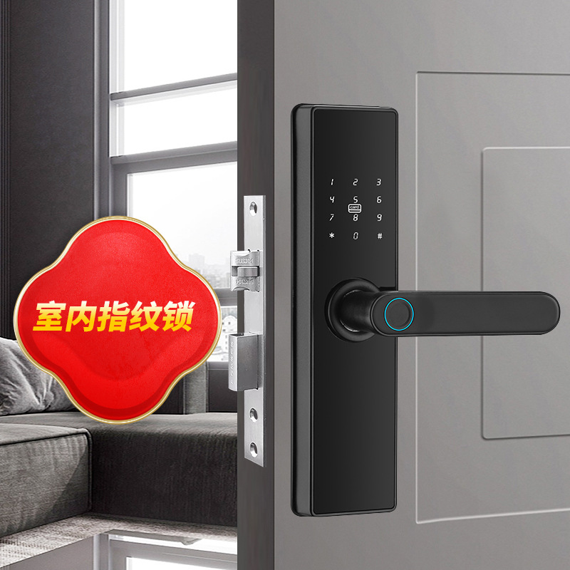 Kunci pintu kayu sidik jari, kunci pintu pintar kata sandi, kunci pintu kayu dalam ruangan, kunci pintar pintu kantor, kamar tidur, kunci pintu kamar