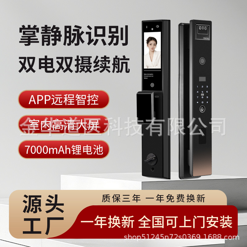 Tongtongxia Tiga Kamera Kunci Sidik Jari Cerdas Pintu Anti-Pencurian Elektronik Mata Kucing 3D Wajah Kunci Cerdas Rumah Kata Sandi Sumber Pabrik
