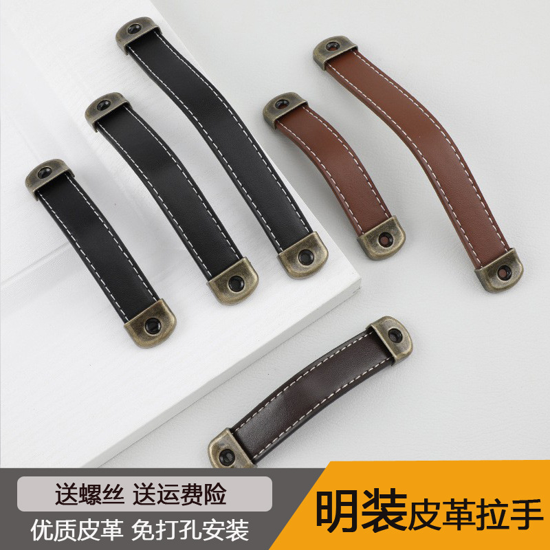 Pintu Kabinet tembaga antik buka pasang kulit pegangan kabinet lemari sepatu kabinet kulit gagang kotak anggur pegangan kulit