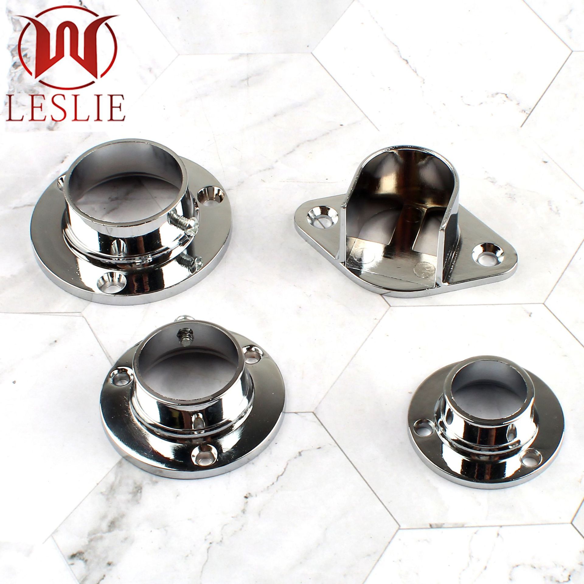 Braket rel pakaian bulat dengan kunci samping, aksesoris furnitur, alas flensa paduan tebal, grosir pabrik, perlengkapan dekorasi lemari pakaian