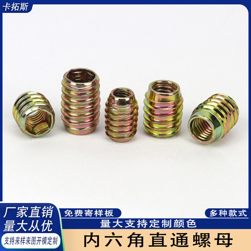 Mur lurus besi heksagon dalam mur gigi dalam dan luar tidak dielektrik konektor furnitur mur bagian tertanam kayu solid M6M8