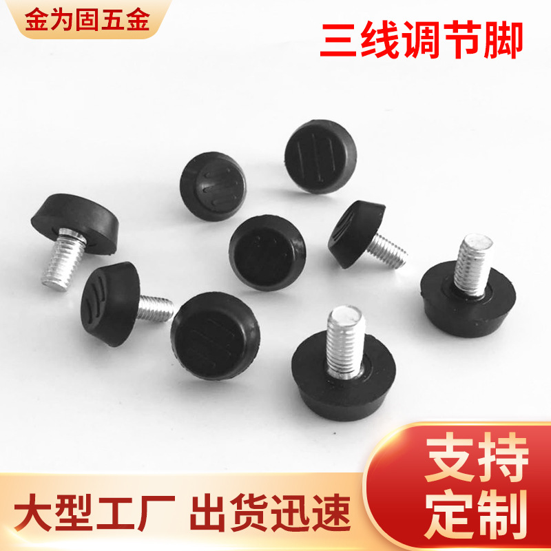 Penjualan langsung pabrik aksesoris furnitur kaki dapat disesuaikan tiga garis hitam meja dan kursi kabinet peningkatan tinggi bantalan kaki dapat disesuaikan aksesoris perangkat keras grosir