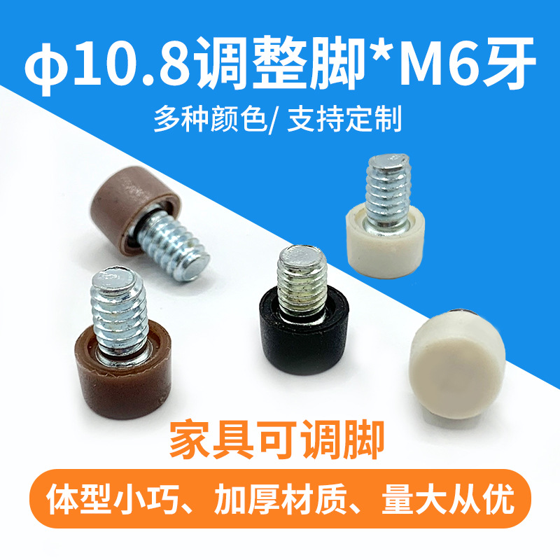 10.8 * M6 furnitur kaki plastik dapat diatur, aksesori mebel kaki dan kursi dapat disesuaikan, bantalan kaki penyesuaian penguatan meja teh