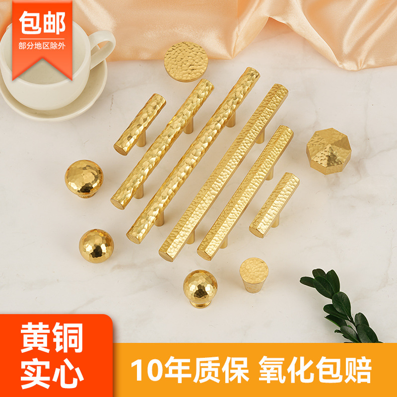 Perangkat keras furnitur lubang panjang tunggal padat kuningan murni palu buatan tangan gaya Cina baru untuk pakaian, sepatu, laci dapur, pintu kabinet, dan pegangan.
