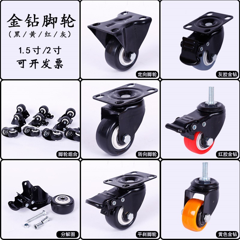 Roda Berlian Emas Roda Poliuretan 3 Inci Roda Universal Diam 1,5 Inci Roda Ramen 2,5 Inci Roda Kaki Berlian Emas 2 Inci