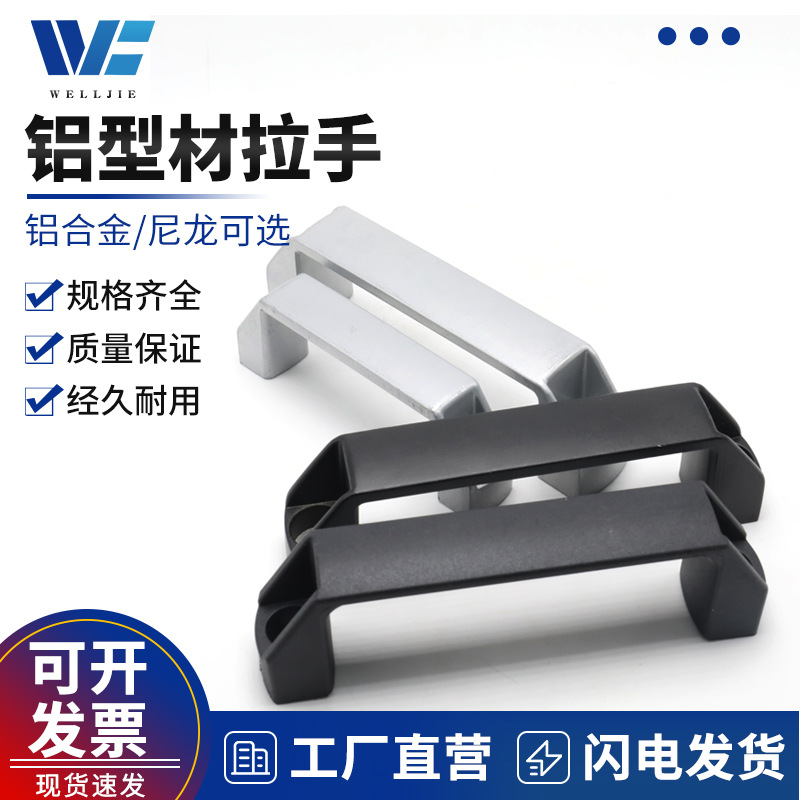 Pegangan kotak alat pegangan pintu kabinet pegangan terbuka Perak Hitam pegangan nilon campuran aluminium 90-180mm