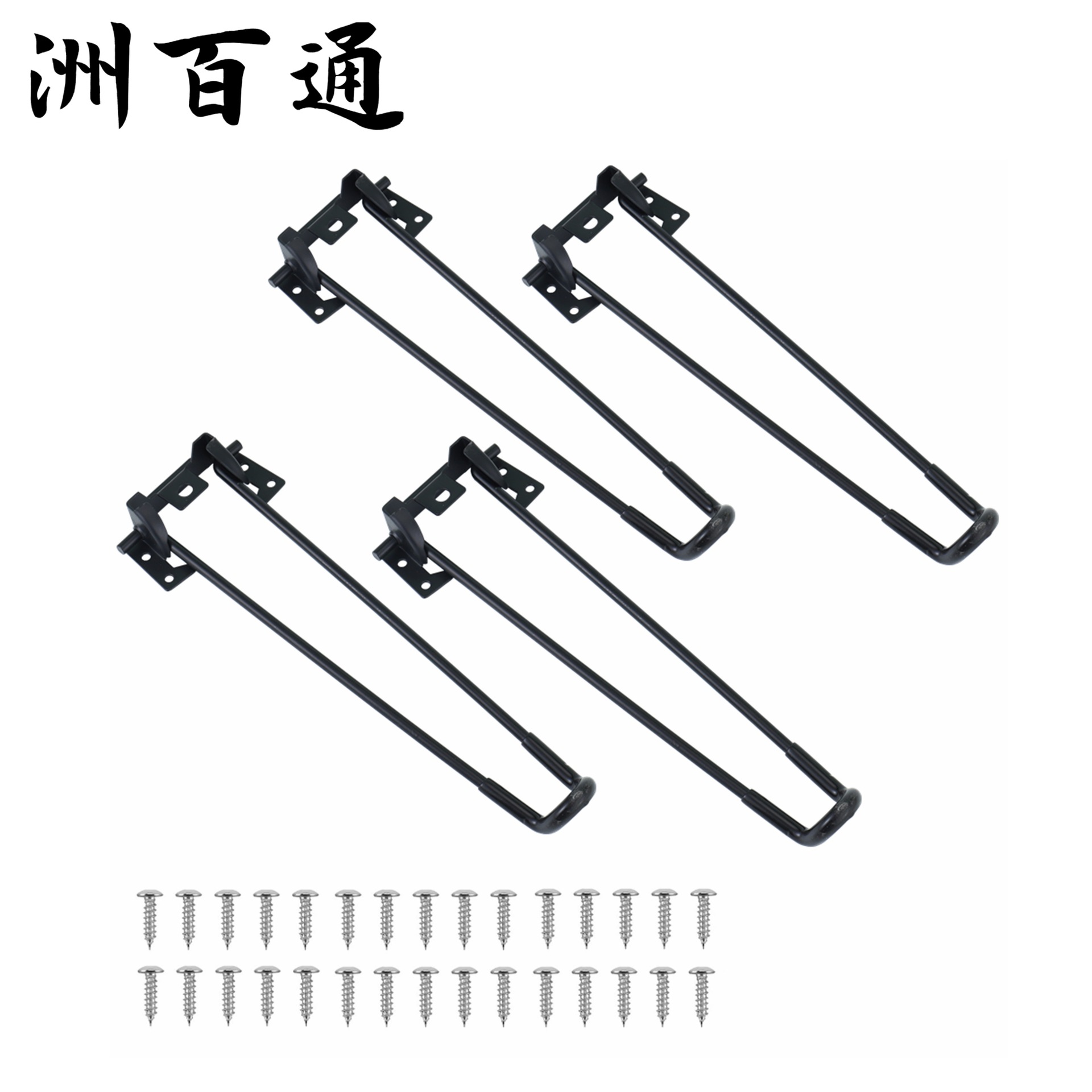 8-28 inci kaki kucing bentuk U hitam, kaki lipat kaki besi pendukung kaki kursi sederhana