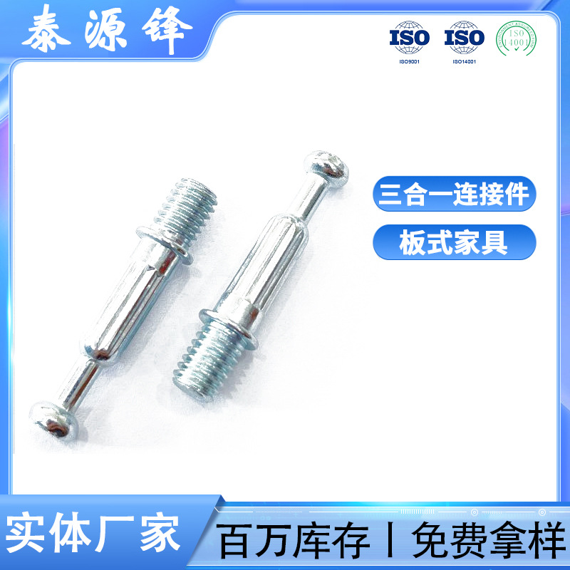 Tiga dalam satu kombinasi kayu solid kabinet besi galvanis M6X33 konektor bergaris perangkat keras tiga