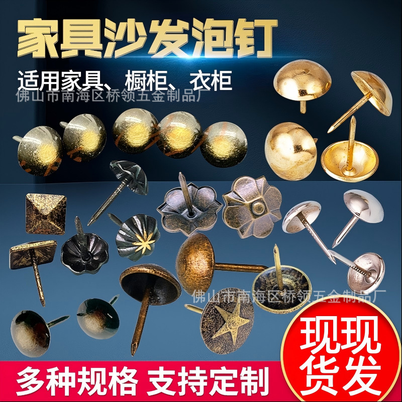 Tas busa kuku lembut dan keras samping tempat tidur, pin dorong bangunan vintage pintu kayu tembaga kuku sofa kotak kuku kabinet dekorasi kuku drum kuku besar kuku