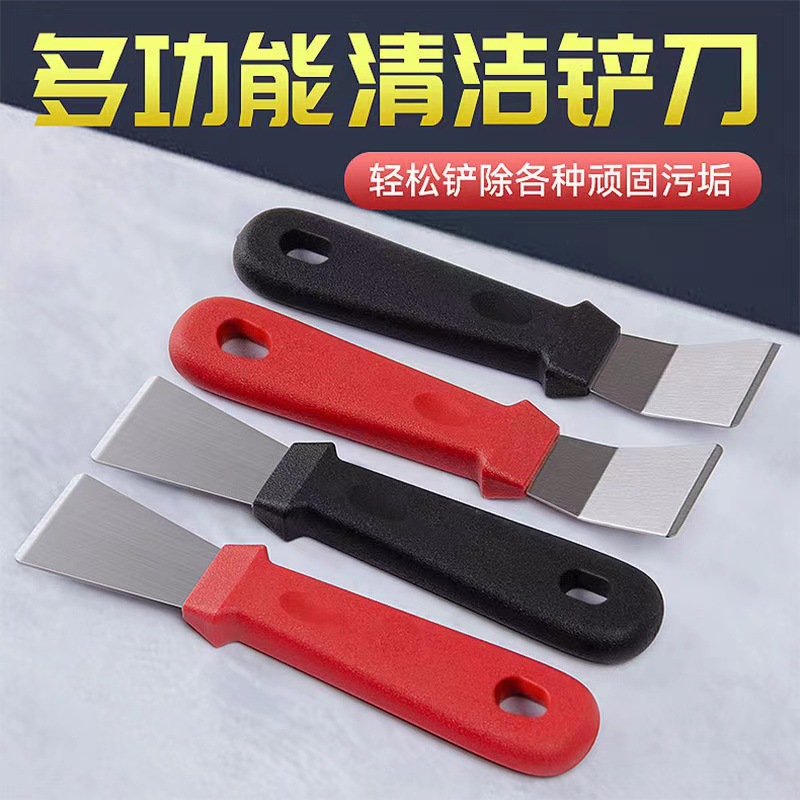 Alat penghilang minyak sekop bawah panci, sekop asap kotoran hitam, sekop es beku, perlengkapan pembersih rumah tangga dapur