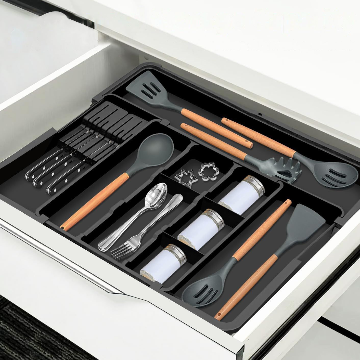 Kotak Penyimpanan Peralatan Makan Dapur Dapat Dikestif Kotak Penyimpanan Kotak Pisau dan Garpu Kotak Penyimpanan Tipe Laci Kotak Peralatan Makan Teleskopik Empat Dalam Empat Pergelangan