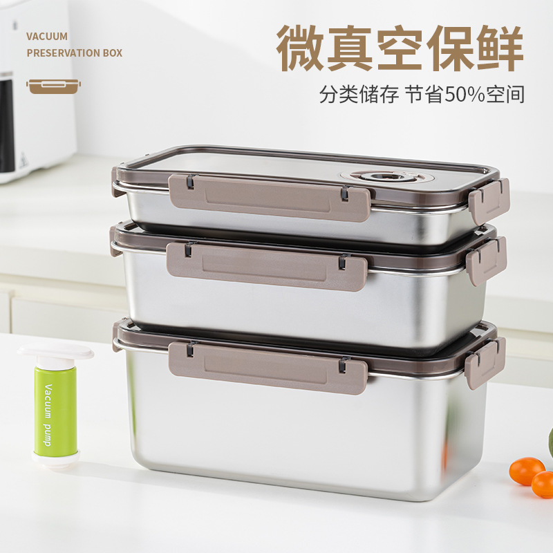 Kotak Penyimpanan Segar Persegi Stainless Steel Gesper Kotak Penyimpanan Segel Silikon Anti Bocor Kotak Penyimpanan Segar Kulkas Dapur