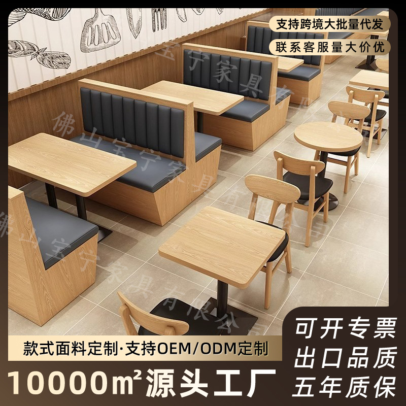 餐厅火锅店靠墙板式茶楼卡座沙发甜品奶茶店快餐店实木餐桌椅组合
