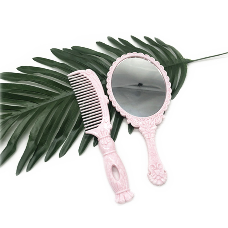 Cermin rias portabel renda, gaya Eropa sisir + cermin setelan kombinasi pegangan portabel cermin rias genggam