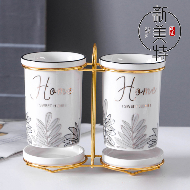 Tempat sumpit keramik, Nordic ringan mewah keramik pemegang sumpit dapur rumah tangga lapisan ganda pengeringan sumpit internet selebriti peralatan makan pisau garpu tabung penyimpanan
