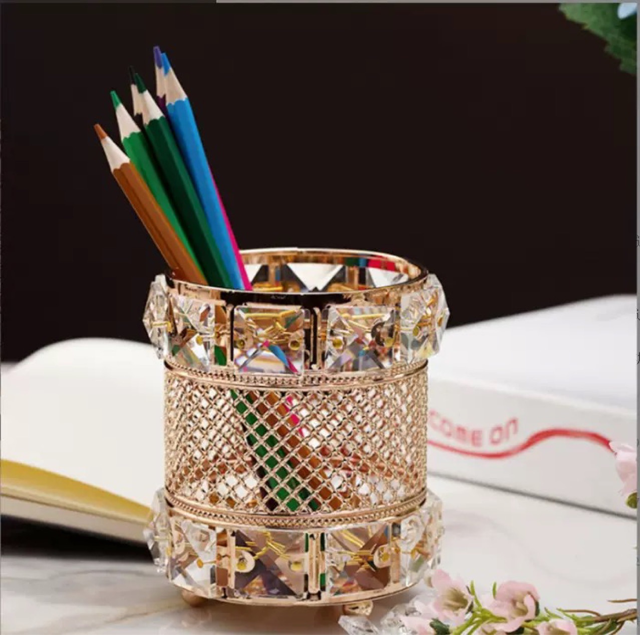 美甲水晶笔筒 ins北欧轻水晶笔筒化妆刷眉笔桌面摆件收纳盒钻石笔