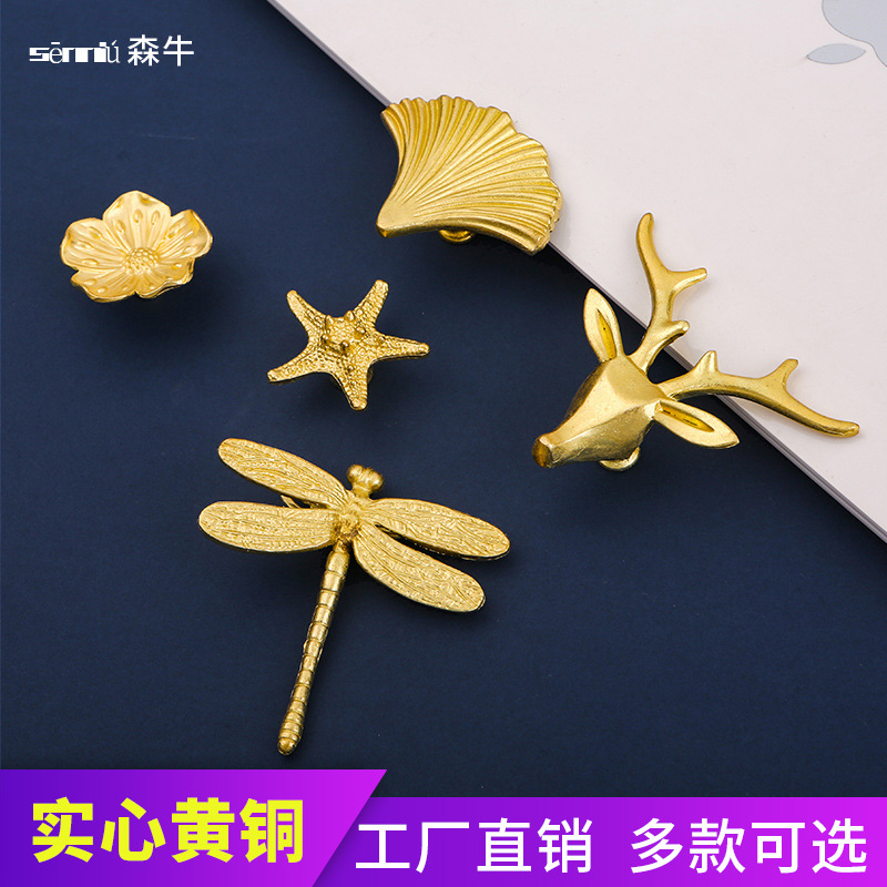 Pabrik grosir murni kuningan lemari pegangan pintu cahaya mewah gaya Nordik tanaman tembaga Laci kabinet pintu pegangan kecil tunggal