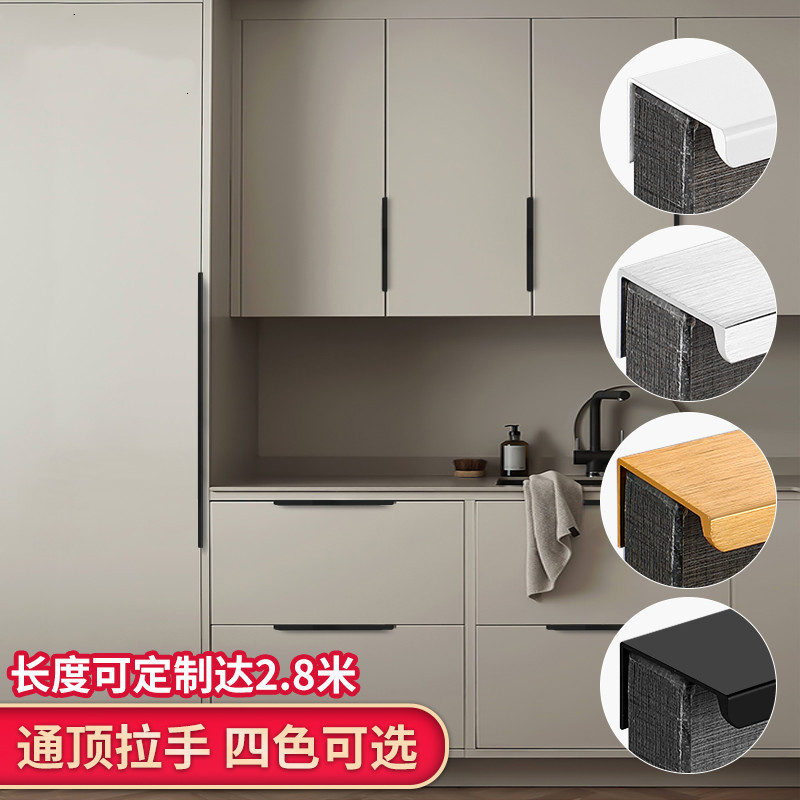 Gagang lemari minimalis tanpa bor, gagang lemari samping ramping, gagang lemari gaya Amerika dari aluminium alloy, gagang lemari laci tak terlihat, gagang pintu lemari.