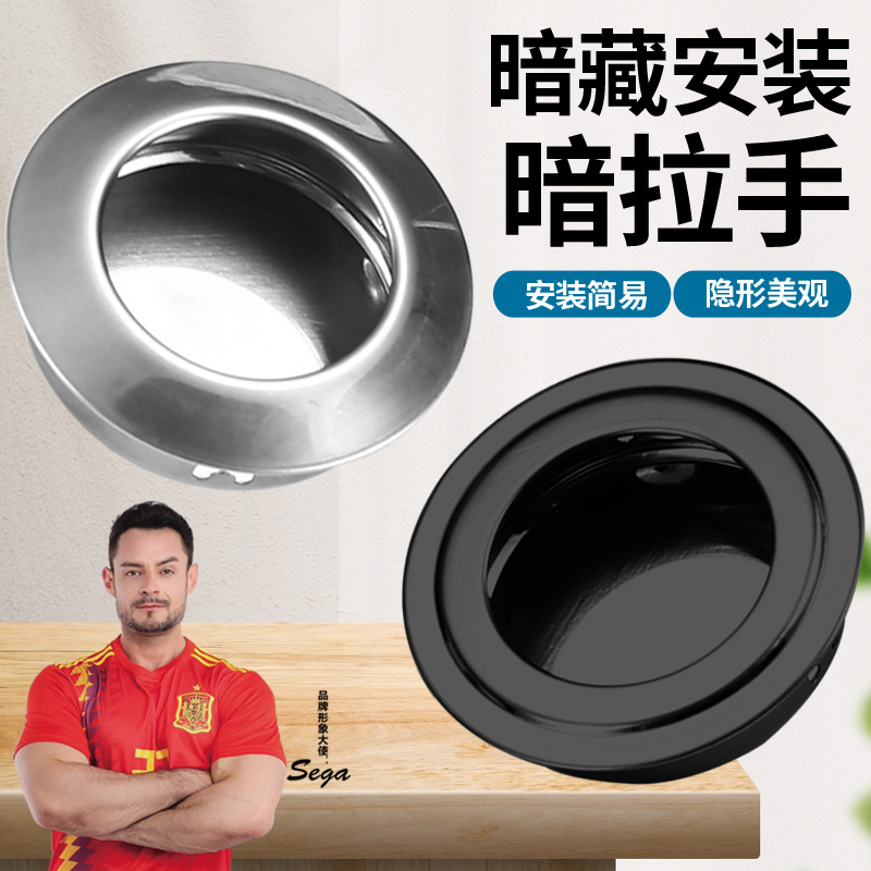 Laci Lemari Tertanam Dapur Kamar Mandi Gantungan Tersembunyi Genggam Gantungan Berlubang Bulat Pegangan Gelap Stainless Steel