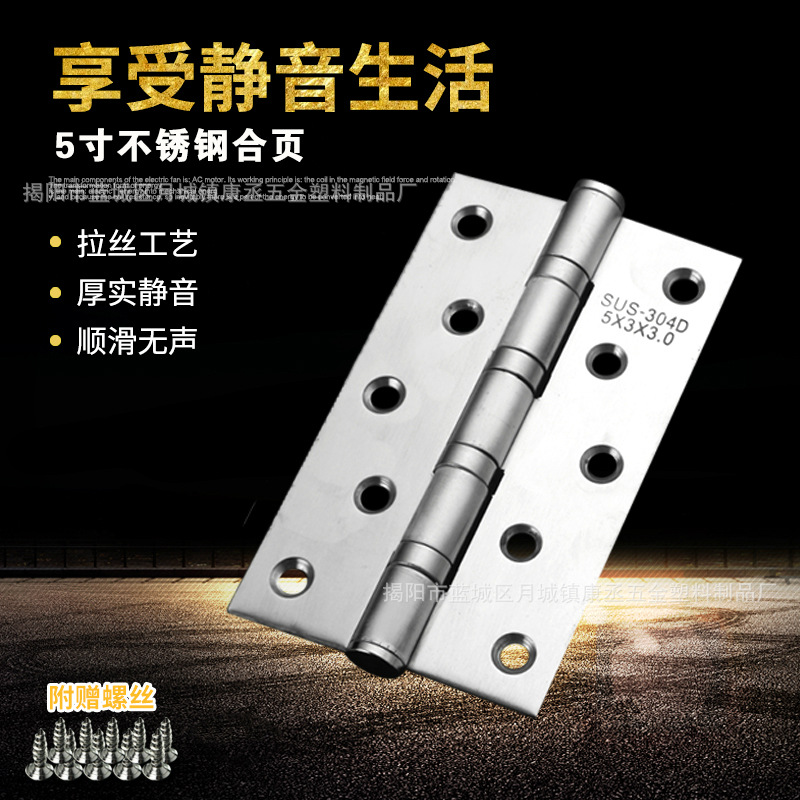 304 Baja Cetak Baja Anti Karat Engsel Ibu 4 Inci 5 Inci Pintu Kayu Dalam Ruangan Engsel Diam Bantalan Penghilang Suara Tanpa Alur