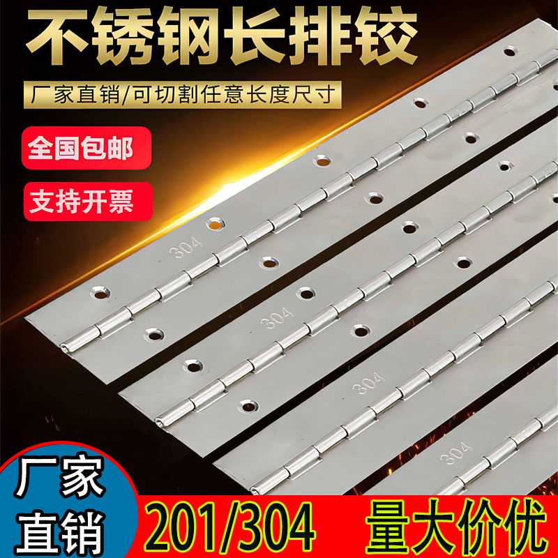 201/304/316 engsel panjang baja tahan karat engsel baris Pintu Kabinet kereta bawah tanah diperpanjang Strip lipat 1 inci 1.5 inci 2 inci