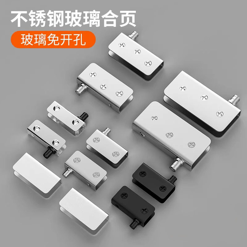 Besi anti karat kaca atas dan bawah lubang engsel bebas tampilan kabinet tanpa bingkai kaca penjepit otomatis pop-up engsel pintu poros berputar